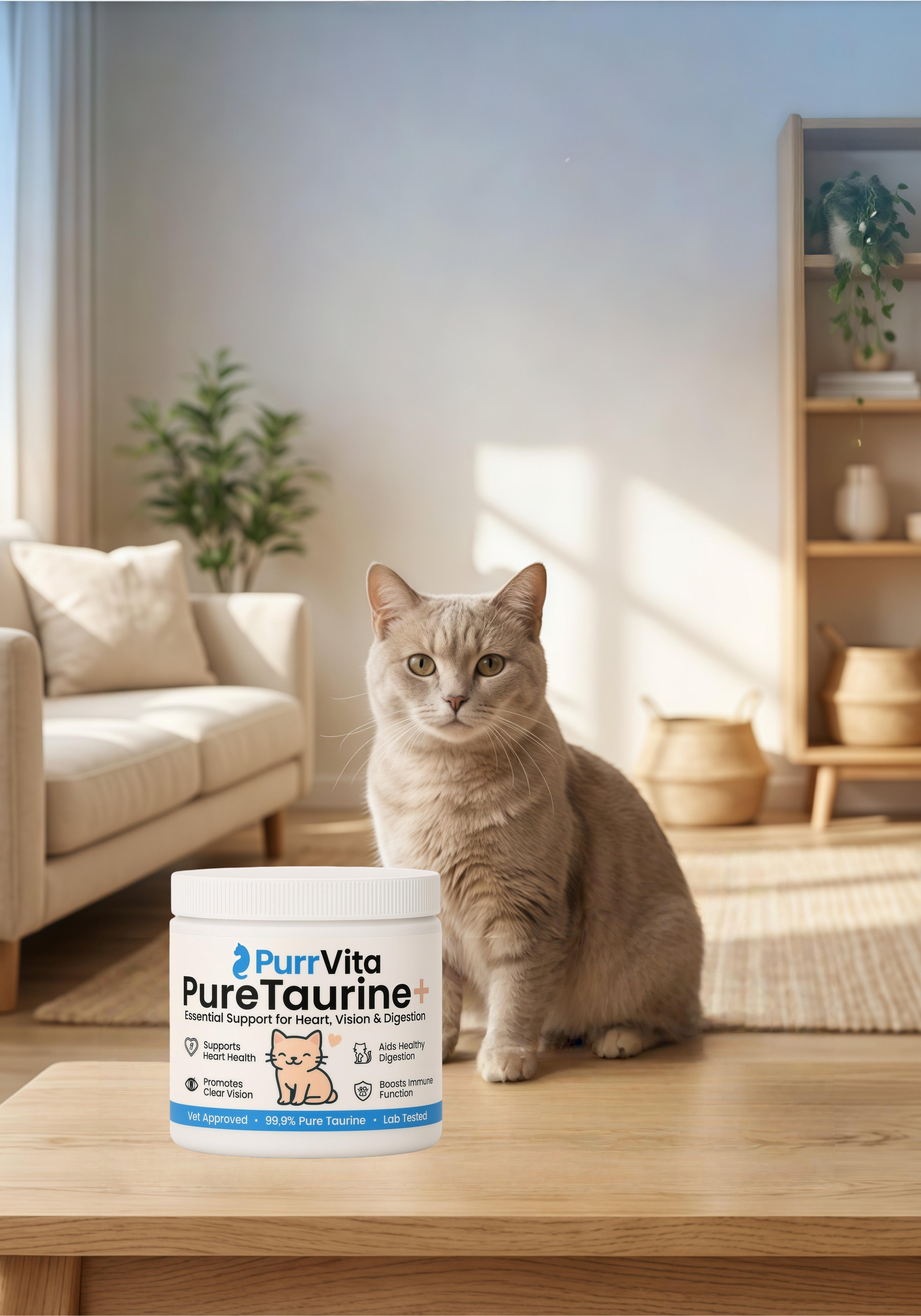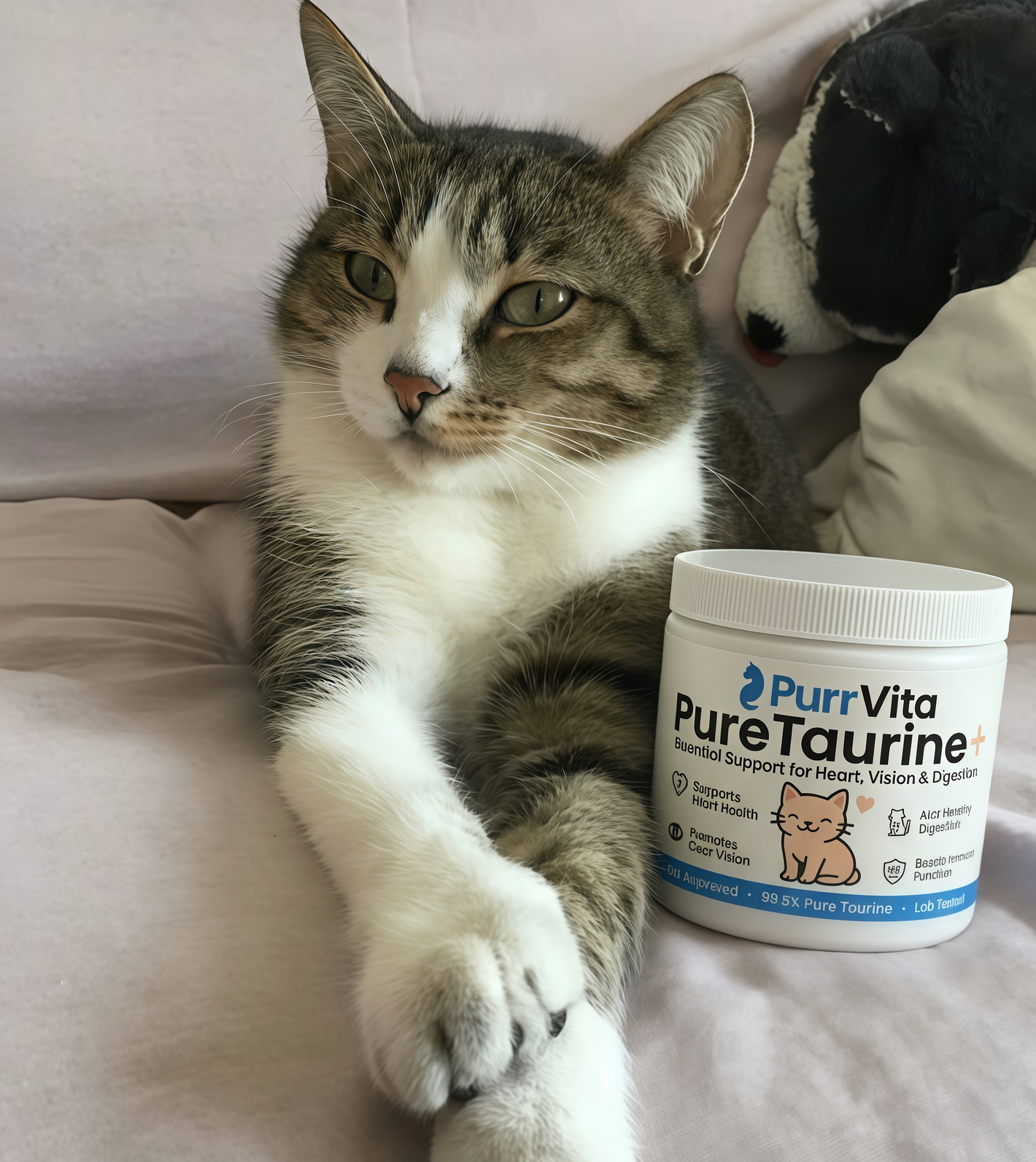 Every batch of PurrVita Taurine is third-party tested for purity, potency, and contaminants. It's 99.9% pharmaceutical-grade taurine, produced in a GMP-certified facility, and free from fillers or additives.